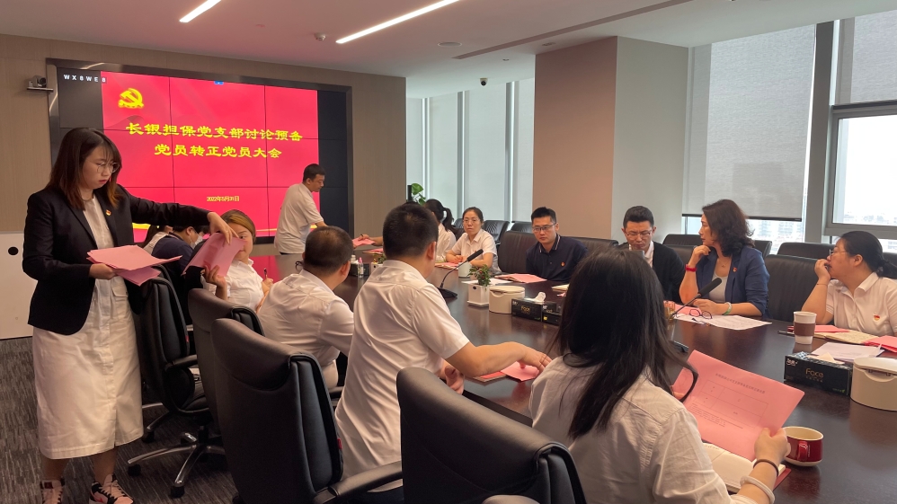5月31日上午,长银担保公司党支部召开党员大会,讨论预备党员陈帆、黄恒、肖薇三位同志转正事宜。会议由支部书记李彩彤主持,支部全体党员参加会议。
