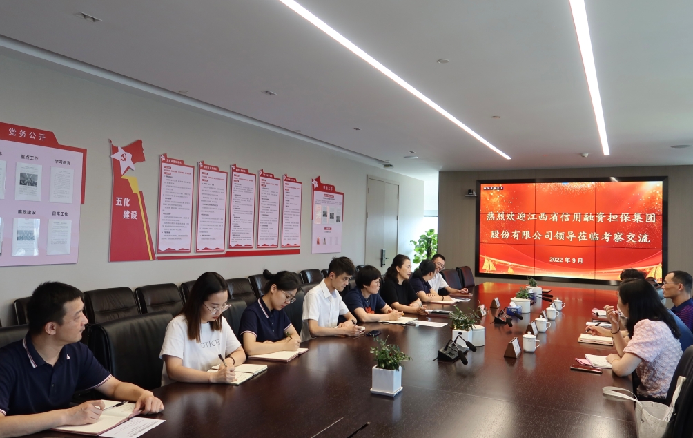 9月6日下午,江西省信用融资担保集团股份有限公司副总经理杨晓忠率队莅临长银担保公司交流座谈。长银担保公司董事长兼总经理李彩彤出席会议,领导班子及相关业务人员共同参加交流会。