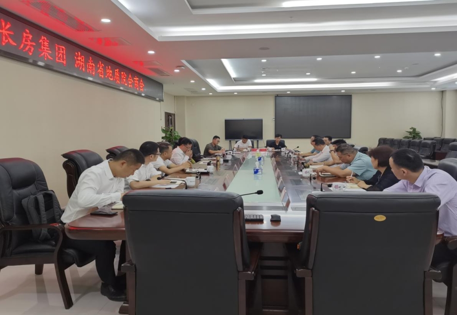 应湖南省地质院邀请,2022年9月28日,长房集团党委书记、董事长胡磊,党委委员、董事、常务副总经理兰萍,党委委员、副总经理刘波一行赴湖南省地质院展开会商座谈会。集团办公室、财务部、战略运营部、投资发展部负责人陪同。